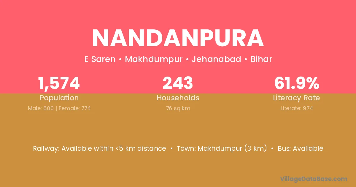 Makhdumpur (3 km) is the nearest town to Nandanpura village for major economic activities and is located approximately 3 km away.