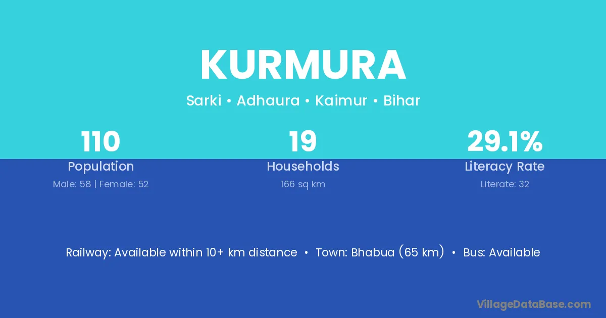 Bhabua (65 km) is the nearest town to Kurmura village for major economic activities and is located approximately 65 km away.