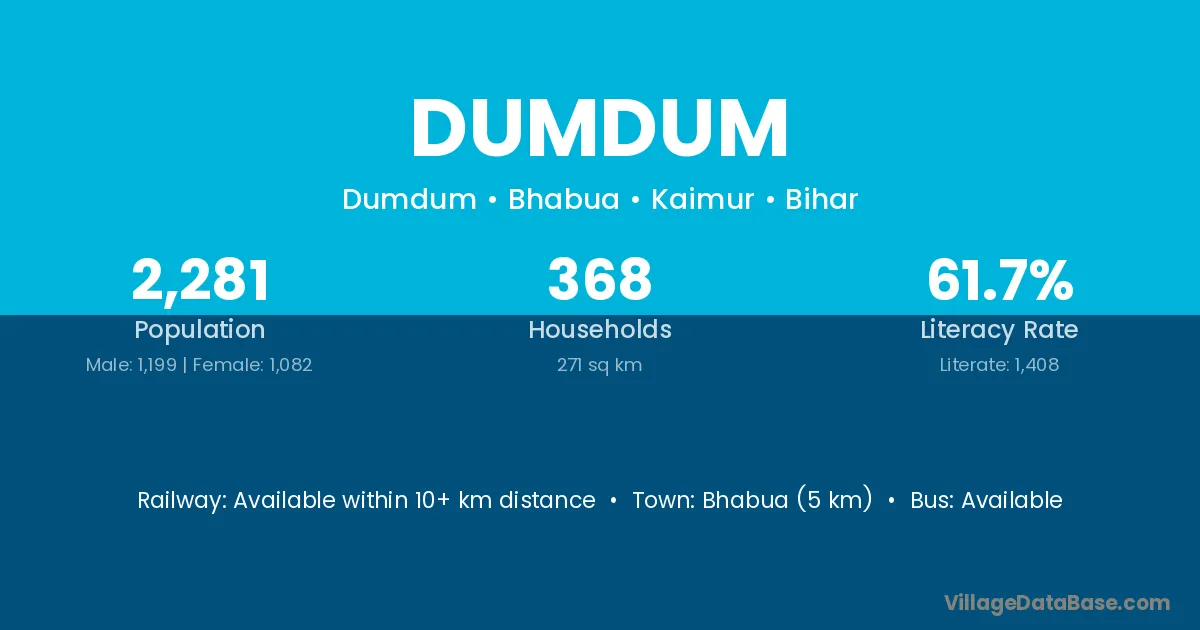 Bhabua (5 km) is the nearest town to Dumdum village for major economic activities and is located approximately 5 km away.