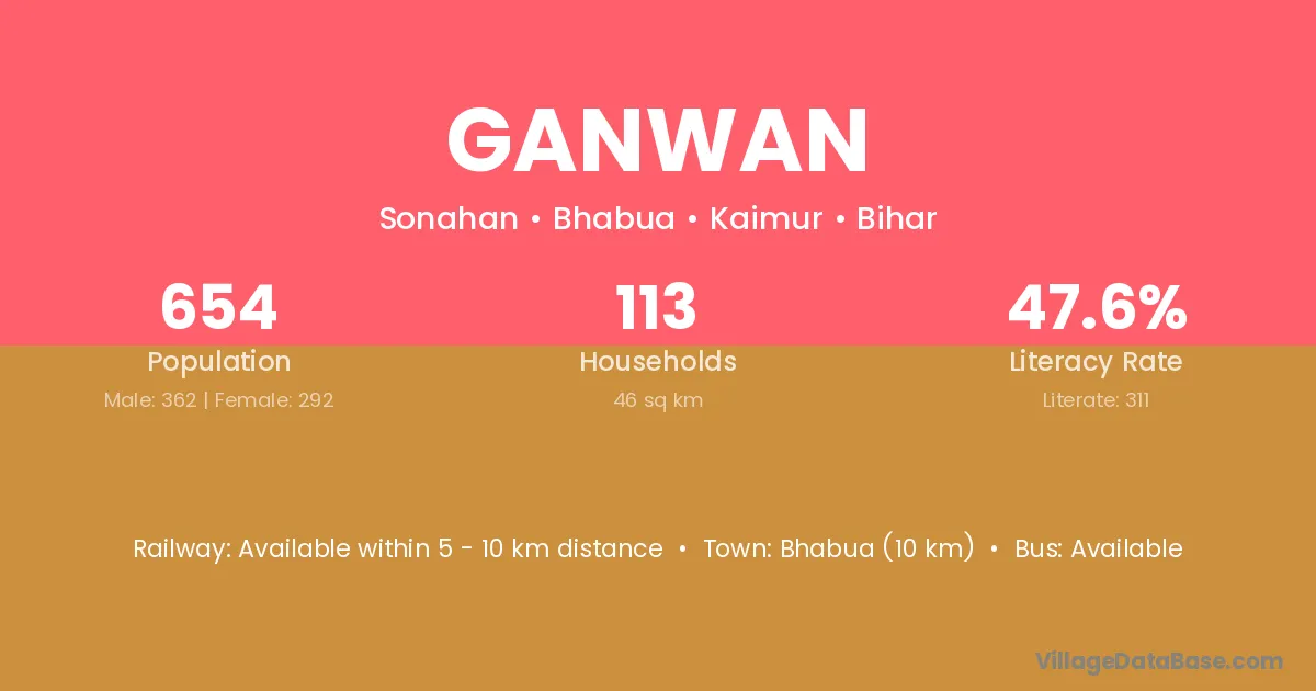 Bhabua (10 km) is the nearest town to Ganwan village for major economic activities and is located approximately 10 km away.