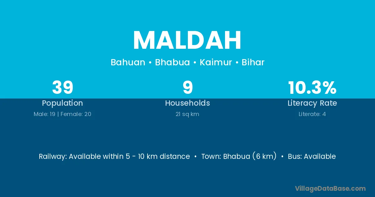 Bhabua (6 km) is the nearest town to Maldah village for major economic activities and is located approximately 6 km away.