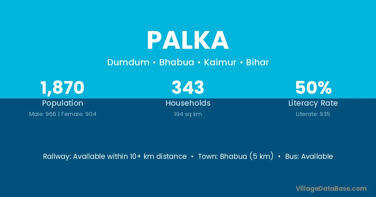 Bhabua (5 km) is the nearest town to Palka village for major economic activities and is located approximately 5 km away.