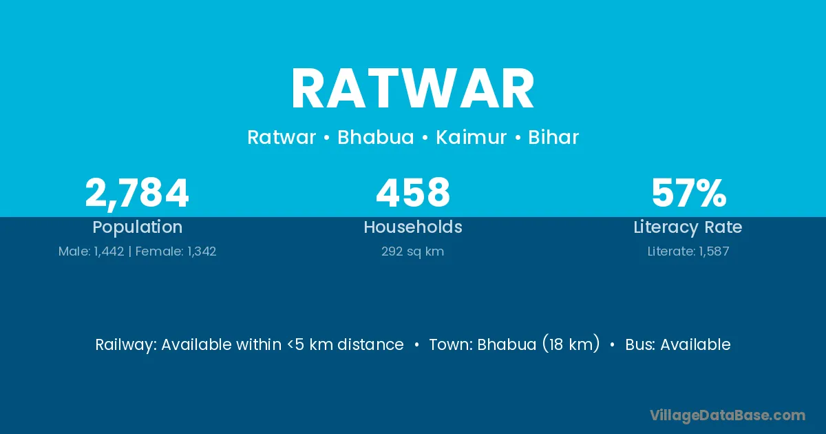 Bhabua (18 km) is the nearest town to Ratwar village for major economic activities and is located approximately 18 km away.