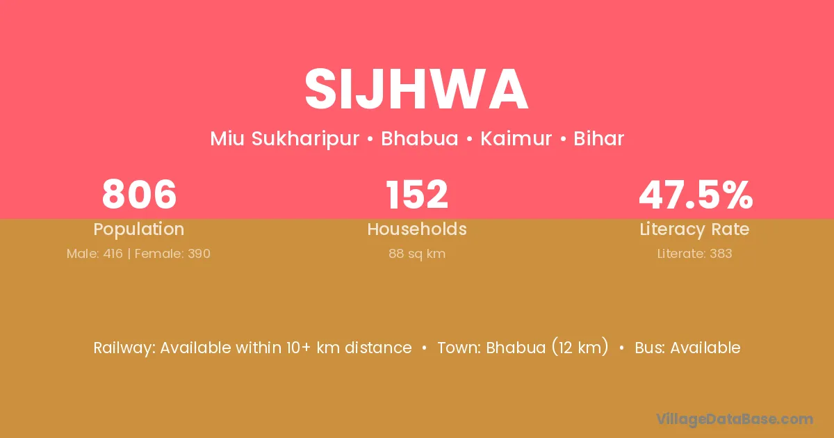 Sijhwa village has a total population of 806 people, of which 416 are males and 390 are females.