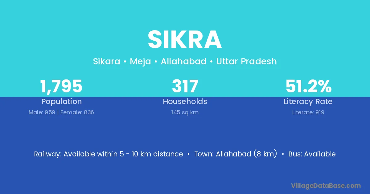 Bhabua (2 km) is the nearest town to Sikra village for major economic activities and is located approximately 2 km away.
