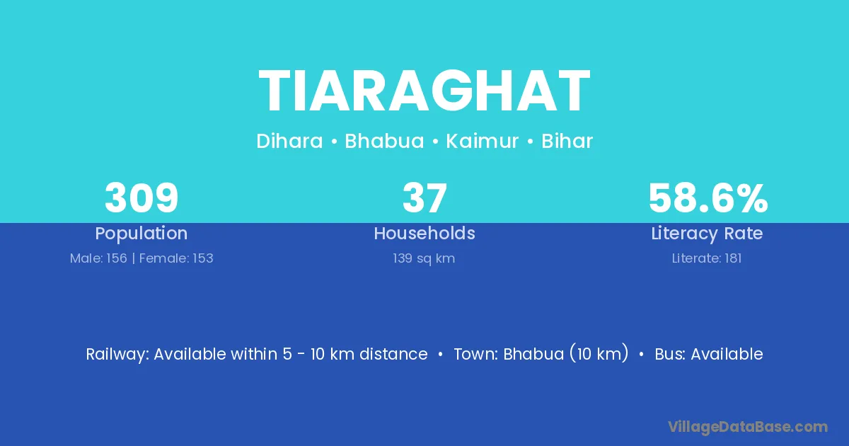 Tiaraghat village has a total population of 309 people, of which 156 are males and 153 are females.