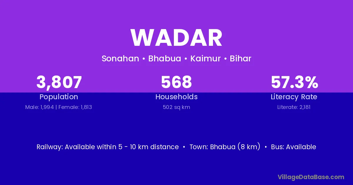 Bhabua (8 km) is the nearest town to Wadar village for major economic activities and is located approximately 8 km away.
