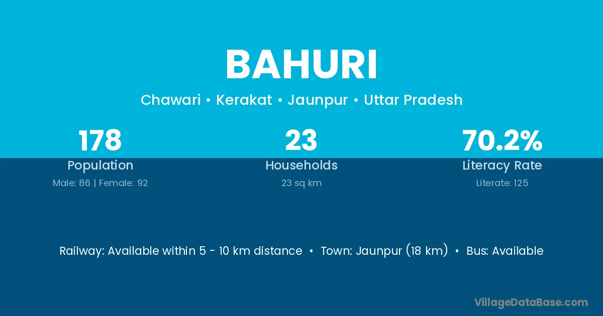 Bhabua (16 km) is the nearest town to Bahuri village for major economic activities and is located approximately 16 km away.