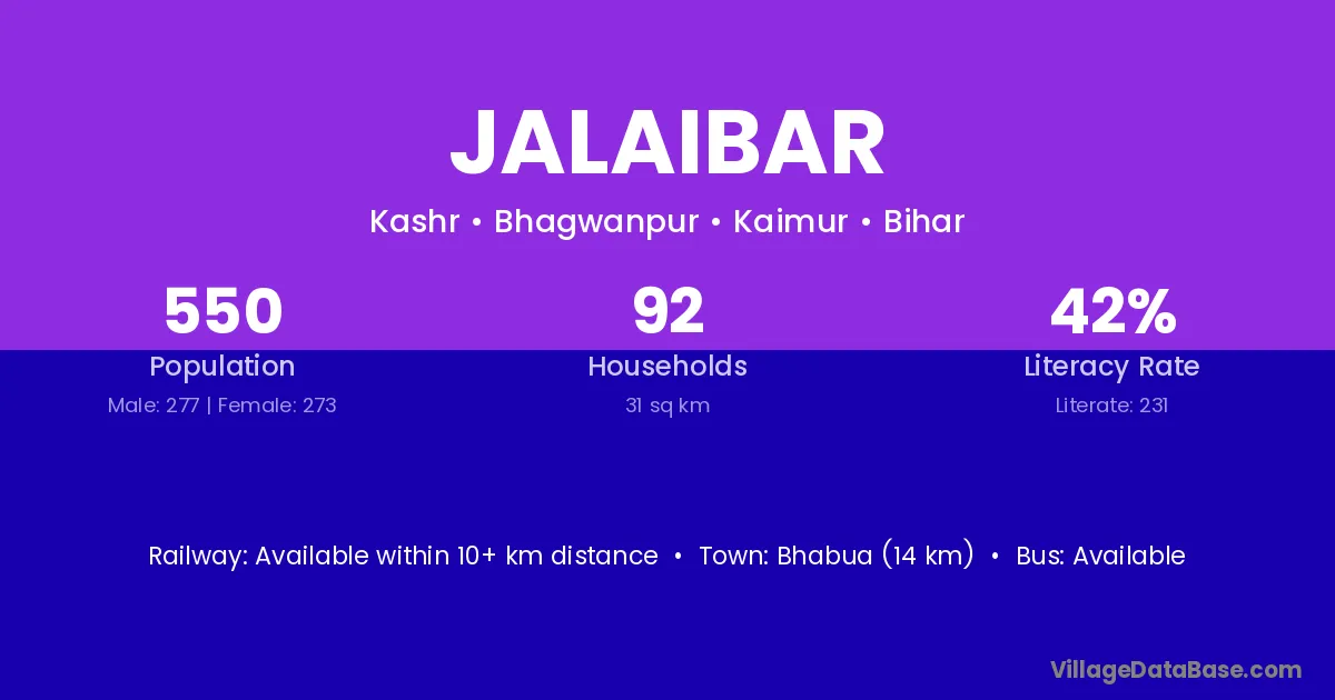 Jalaibar village has a total population of 550 people, of which 277 are males and 273 are females.