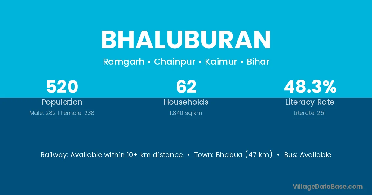 Bhabua (47 km) is the nearest town to Bhaluburan village for major economic activities and is located approximately 47 km away.