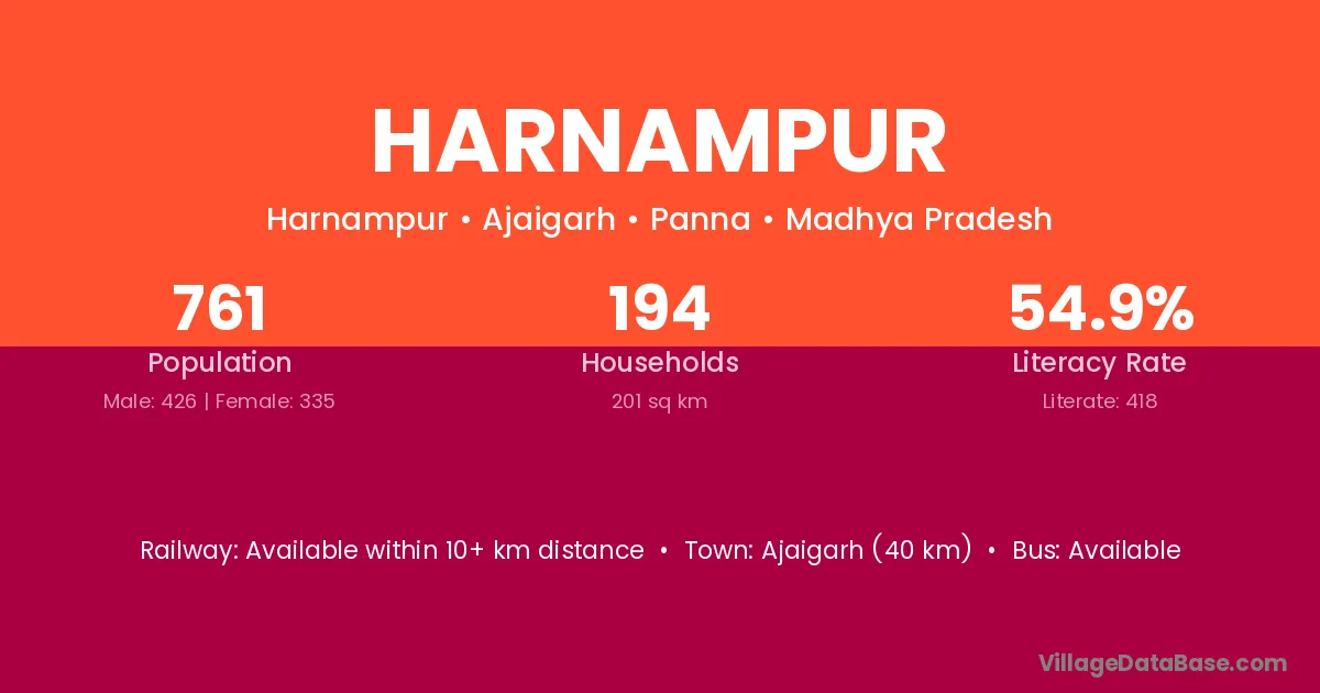 Bhabua (25 km) is the nearest town to Harnampur village for major economic activities and is located approximately 25 km away.
