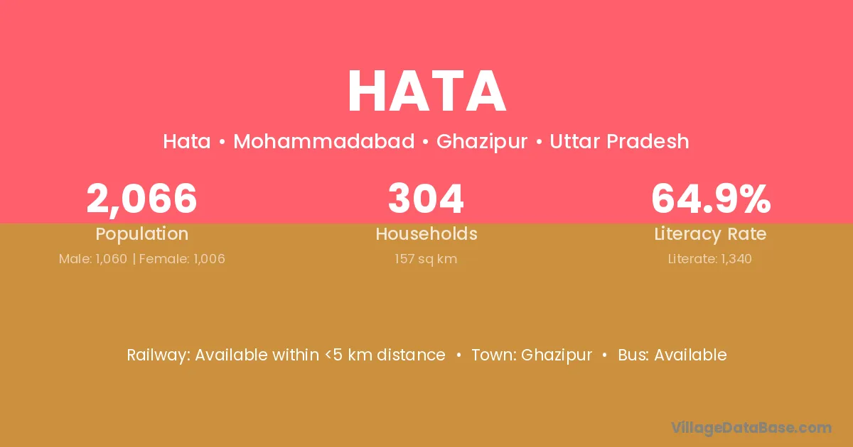 Bhabua (15 km) is the nearest town to Hata village for major economic activities and is located approximately 15 km away.