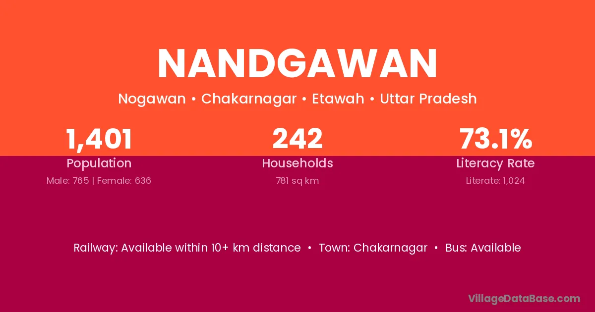 Nandgawan village has a total population of 1,835 people, of which 967 are males and 868 are females.