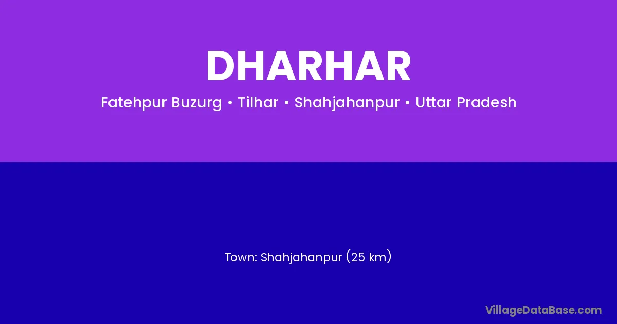 Bhabua (45 km) is the nearest town to Dharhar village for major economic activities and is located approximately 45 km away.