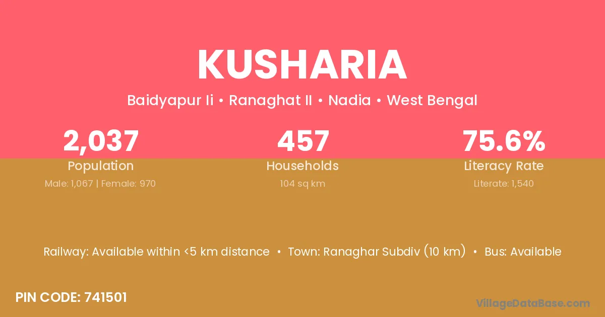The literacy rate of Kusharia village is 52.72%. Male literacy stands at 63.22% and female literacy at 40.45%.