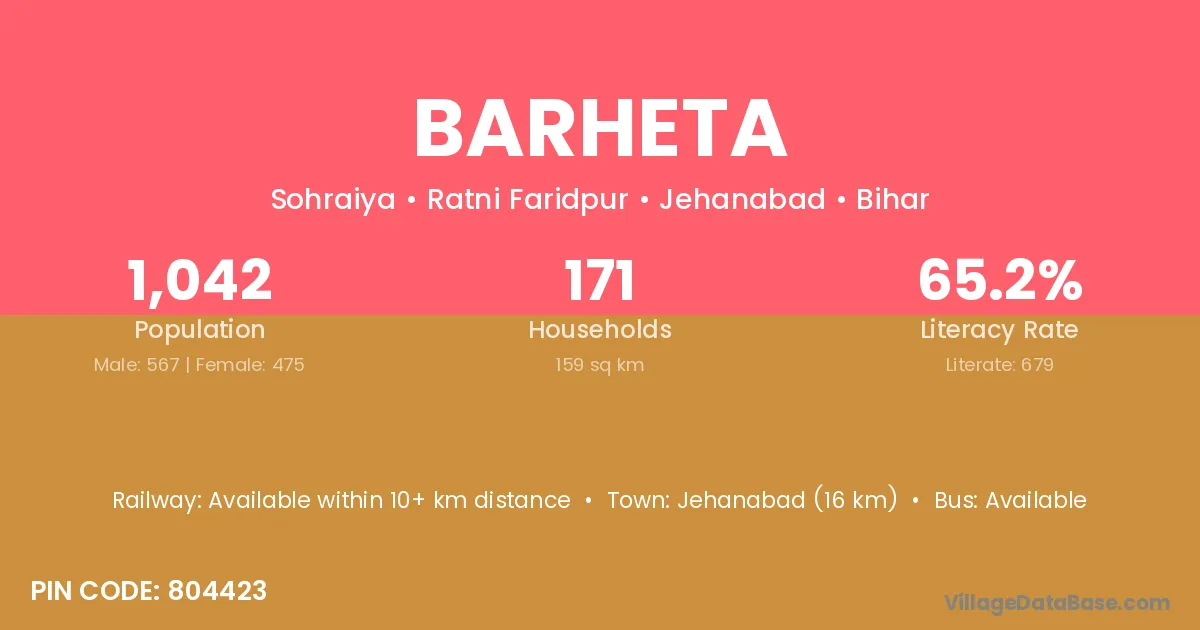 Barheta village is located in the Kudra Subdivision of the Kaimur district in Bihar .