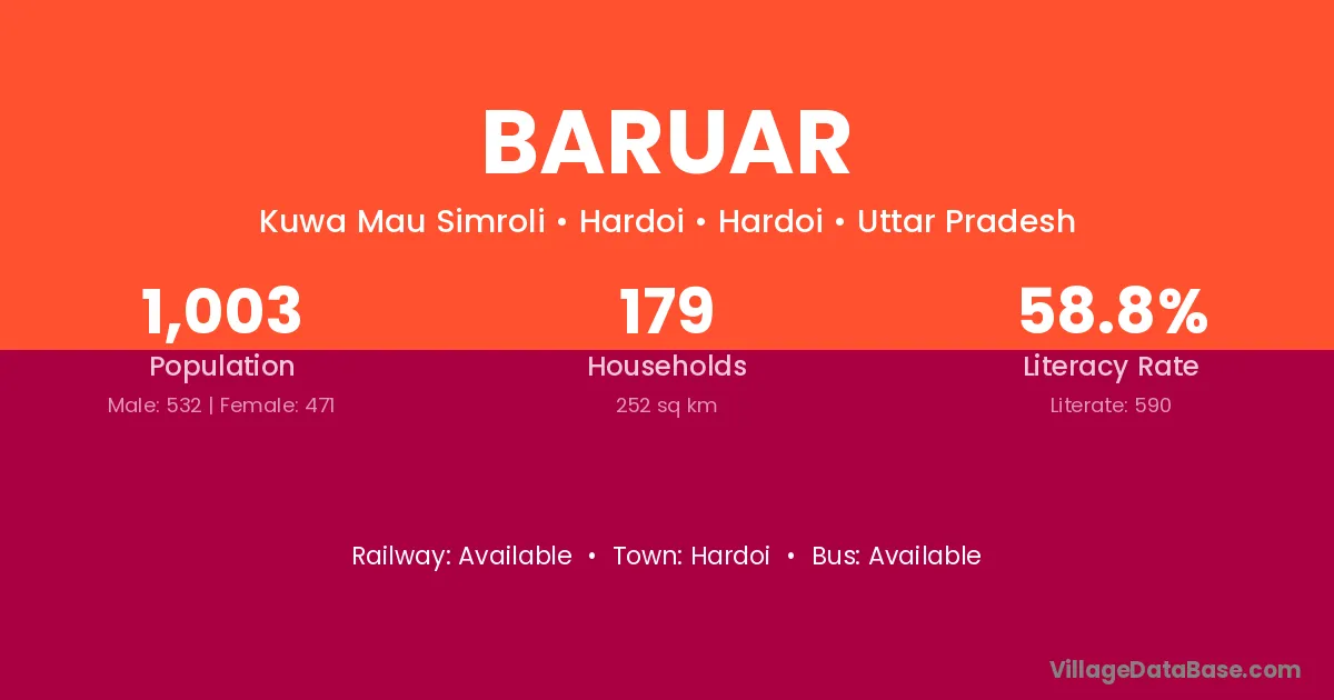 Bhabua (28 km) is the nearest town to Baruar village for major economic activities and is located approximately 28 km away.
