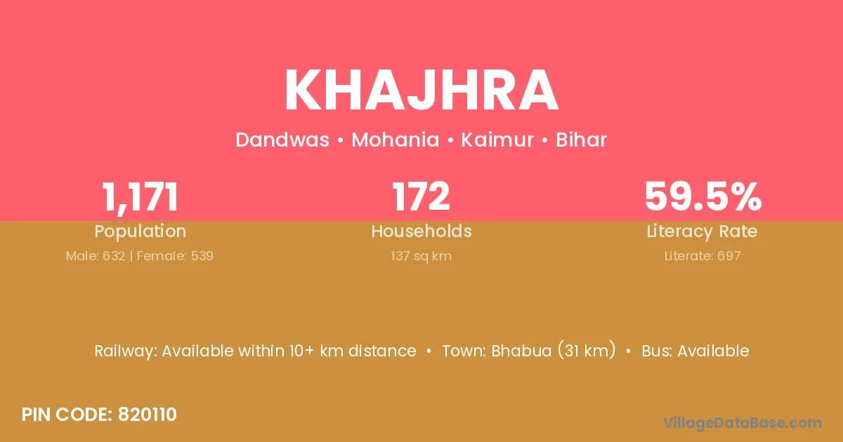 Bhabua (31 km) is the nearest town to Khajhra village for major economic activities and is located approximately 31 km away.