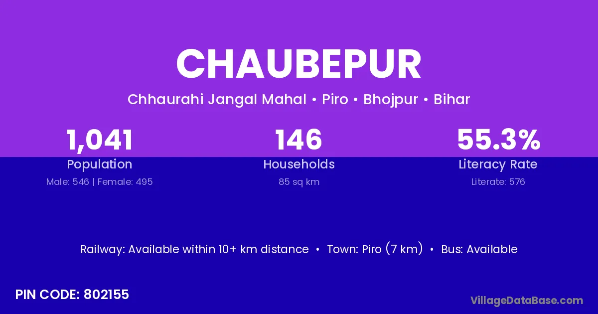 Bhabua (45 km) is the nearest town to Chaubepur village for major economic activities and is located approximately 45 km away.