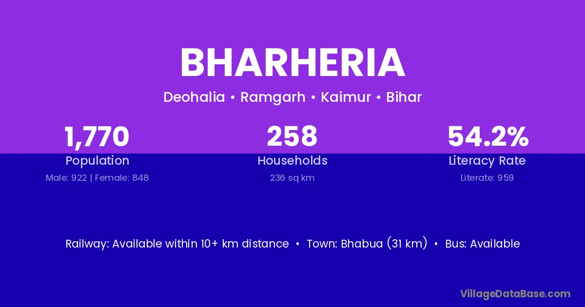 Bharheria village has a total population of 1,770 people, of which 922 are males and 848 are females.