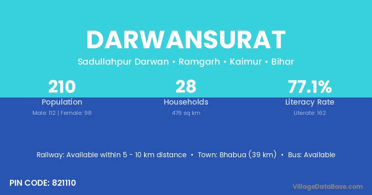 Bhabua (39 km) is the nearest town to Darwansurat village for major economic activities and is located approximately 39 km away.