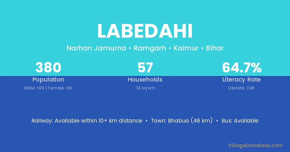Bhabua (46 km) is the nearest town to Labedahi village for major economic activities and is located approximately 46 km away.