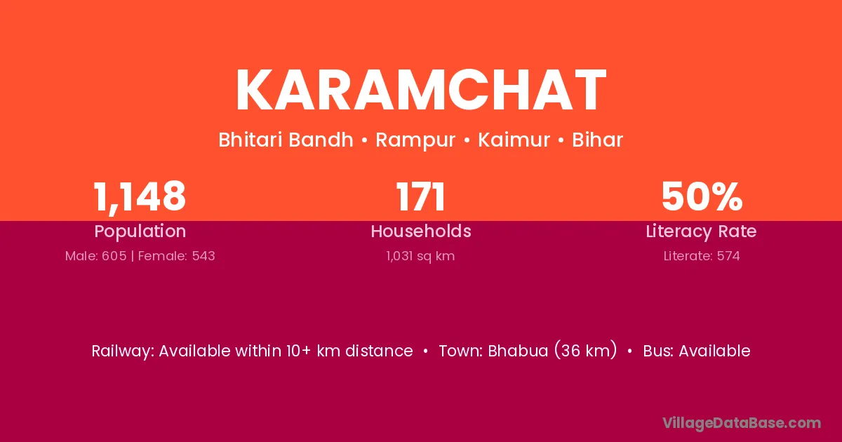 Bhabua (36 km) is the nearest town to Karamchat village for major economic activities and is located approximately 36 km away.