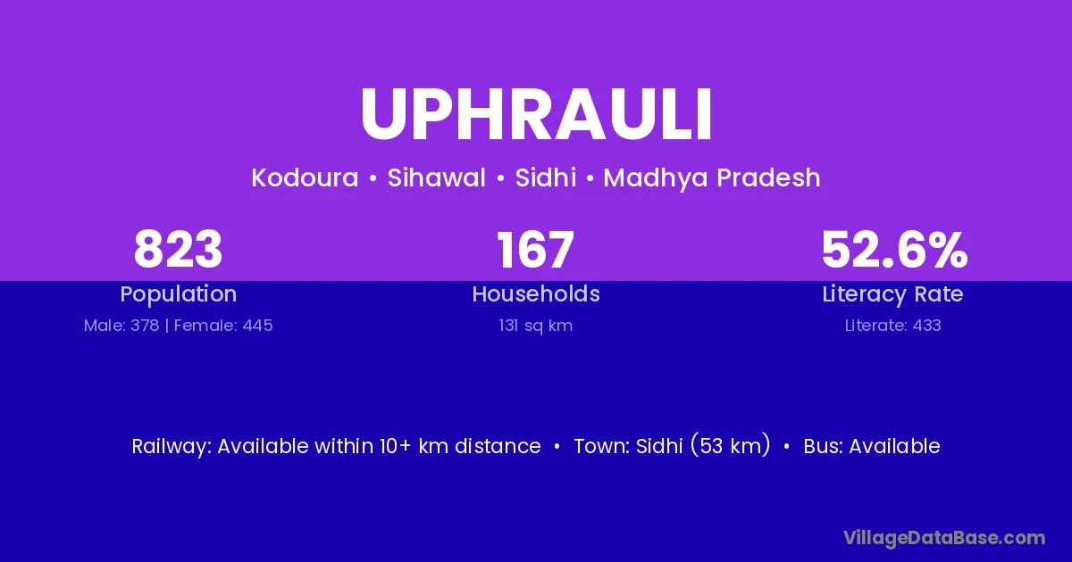 Bhabua (18 km) is the nearest town to Uphrauli village for major economic activities and is located approximately 18 km away.