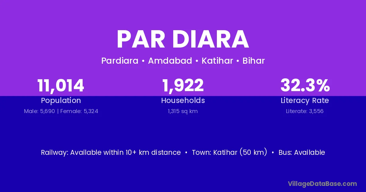 Katihar (50 km) is the nearest town to Par Diara village for major economic activities and is located approximately 50 km away.
