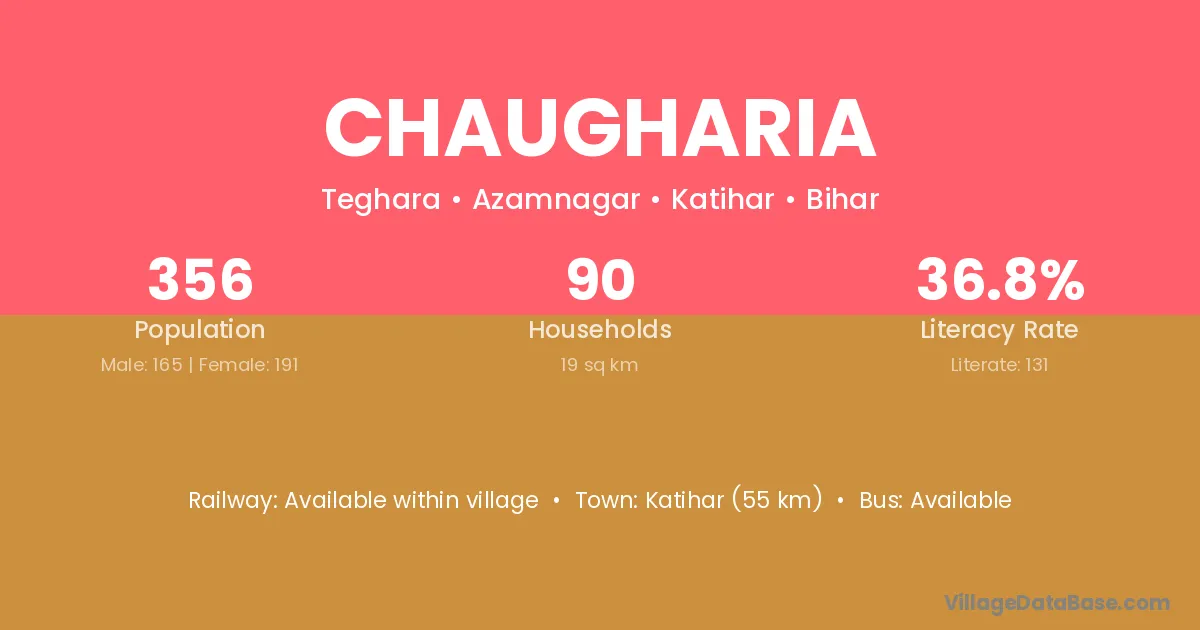 Katihar (55 km) is the nearest town to Chaugharia village for major economic activities and is located approximately 55 km away.