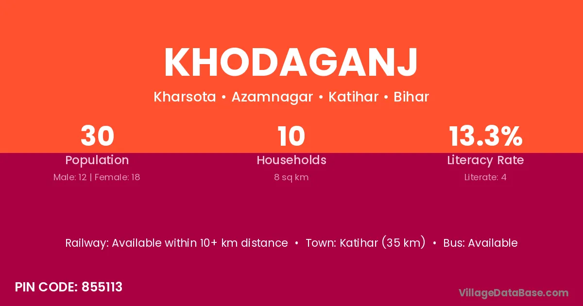 Katihar (35 km) is the nearest town to Khodaganj village for major economic activities and is located approximately 35 km away.