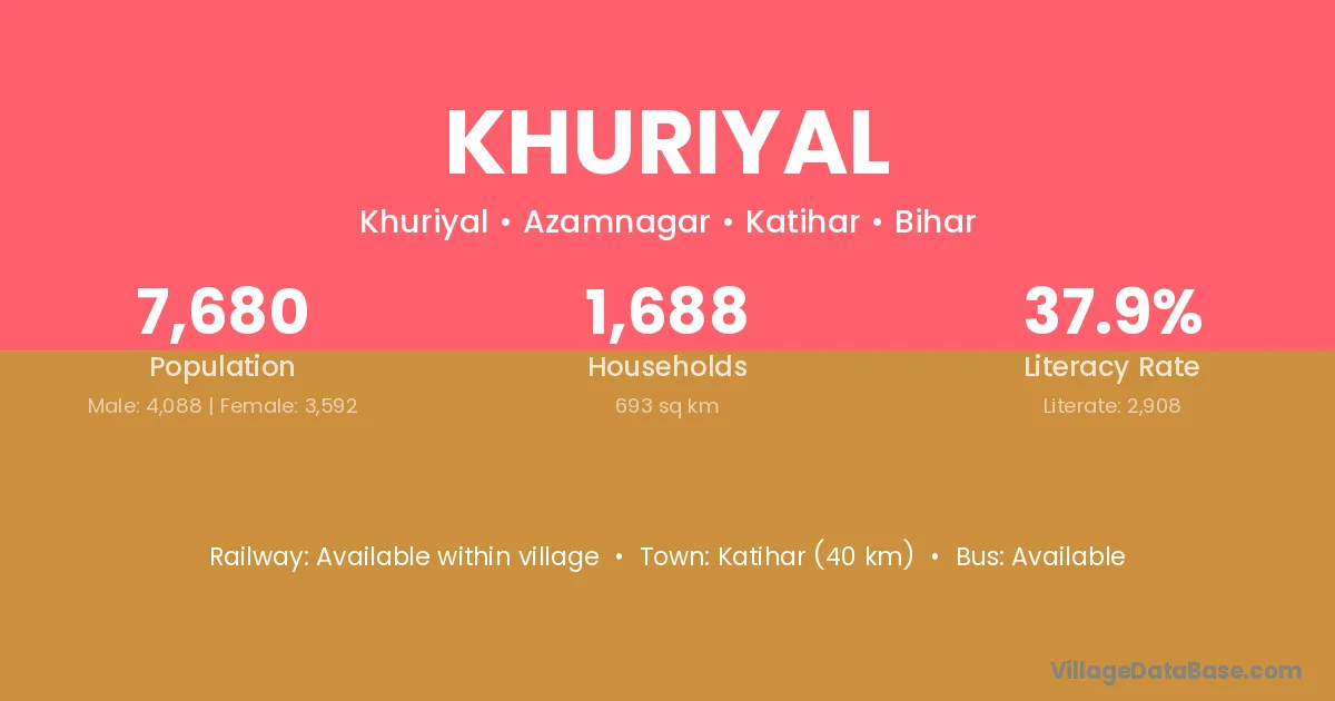 Katihar (40 km) is the nearest town to Khuriyal village for major economic activities and is located approximately 40 km away.