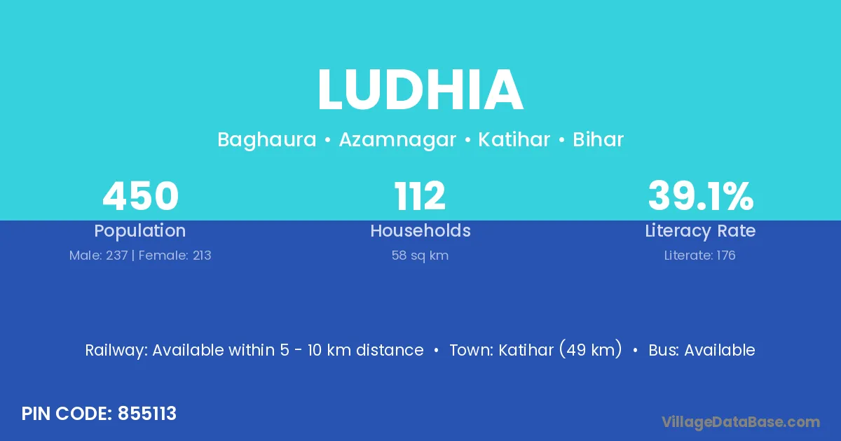 Katihar (49 km) is the nearest town to Ludhia village for major economic activities and is located approximately 49 km away.