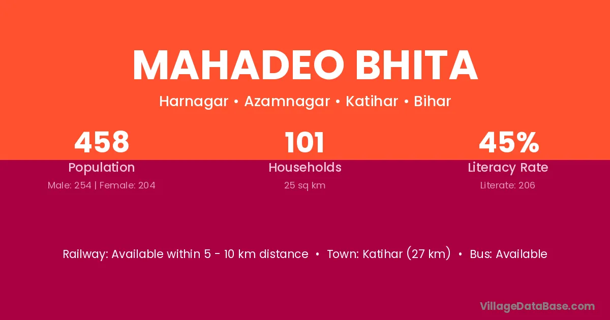 Katihar (27 km) is the nearest town to Mahadeo Bhita village for major economic activities and is located approximately 27 km away.