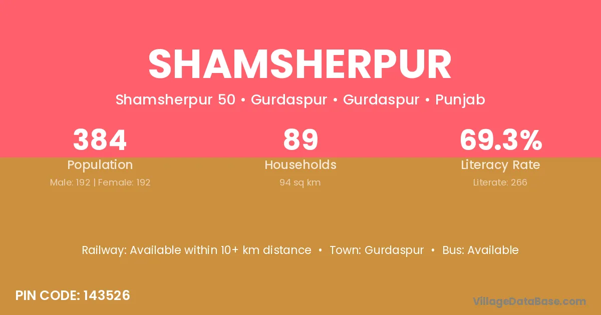 Shamsherpur village has a total population of 612 people, of which 309 are males and 303 are females.