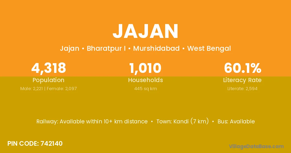 Dalkhola(w.b.) (14 km) is the nearest town to Jajan village for major economic activities and is located approximately 14 km away.