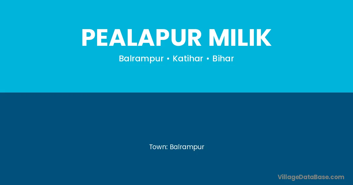 Pealapur Milik village is located in the Balrampur Subdivision of the Katihar district in Bihar .