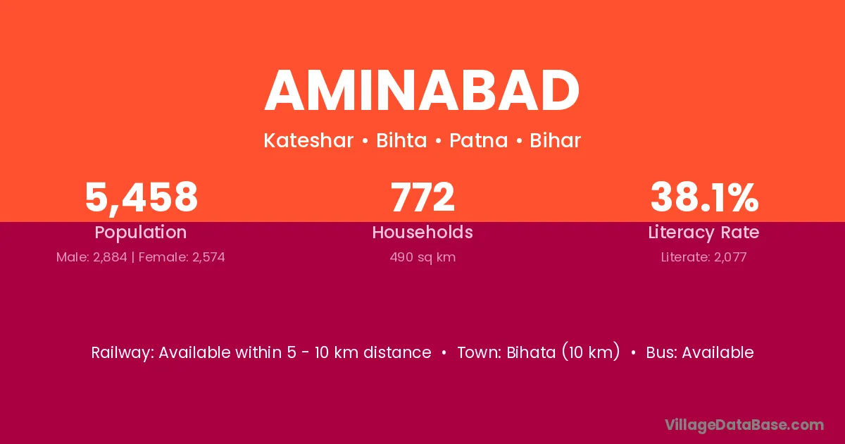 Katihar (20 km) is the nearest town to Aminabad village for major economic activities and is located approximately 20 km away.