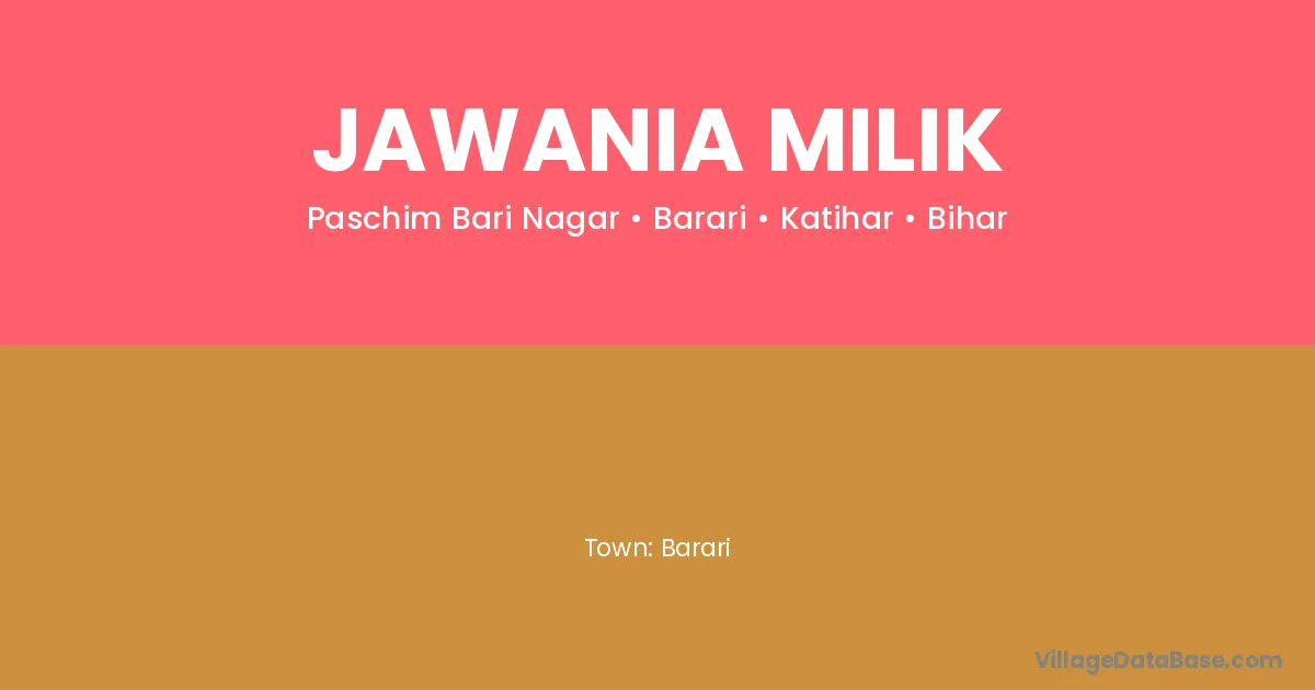 Jawania Milik village is located in the Barari Subdivision of the Katihar district in Bihar .