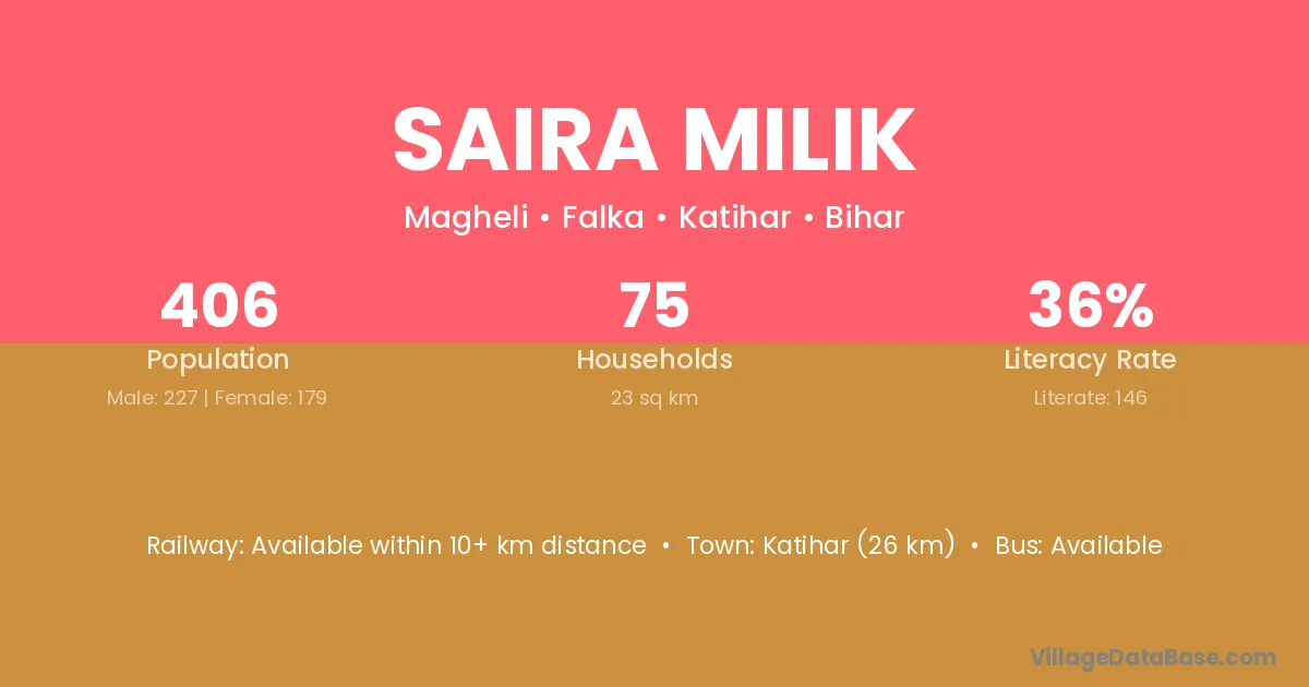 Saira Milik village is located in the Barari Subdivision of the Katihar district in Bihar .
