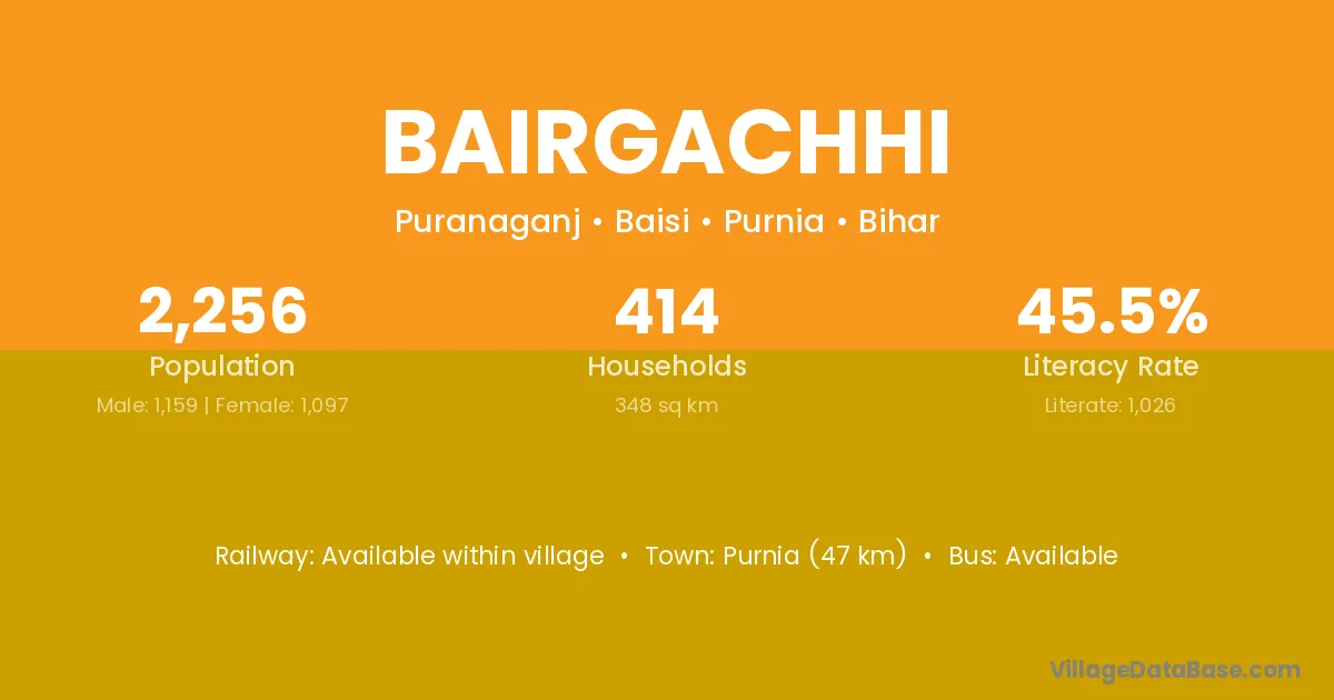 Bairgachhi village is located in the Barsoi Subdivision of the Katihar district in Bihar .