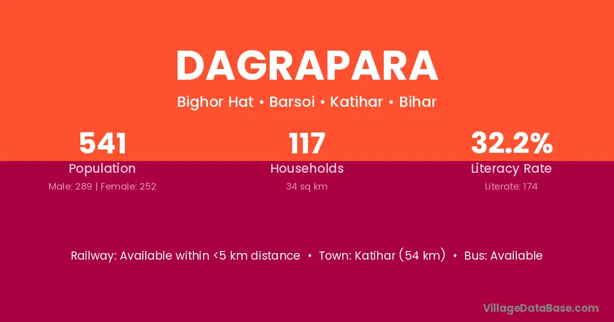 Katihar (54 km) is the nearest town to Dagrapara village for major economic activities and is located approximately 54 km away.