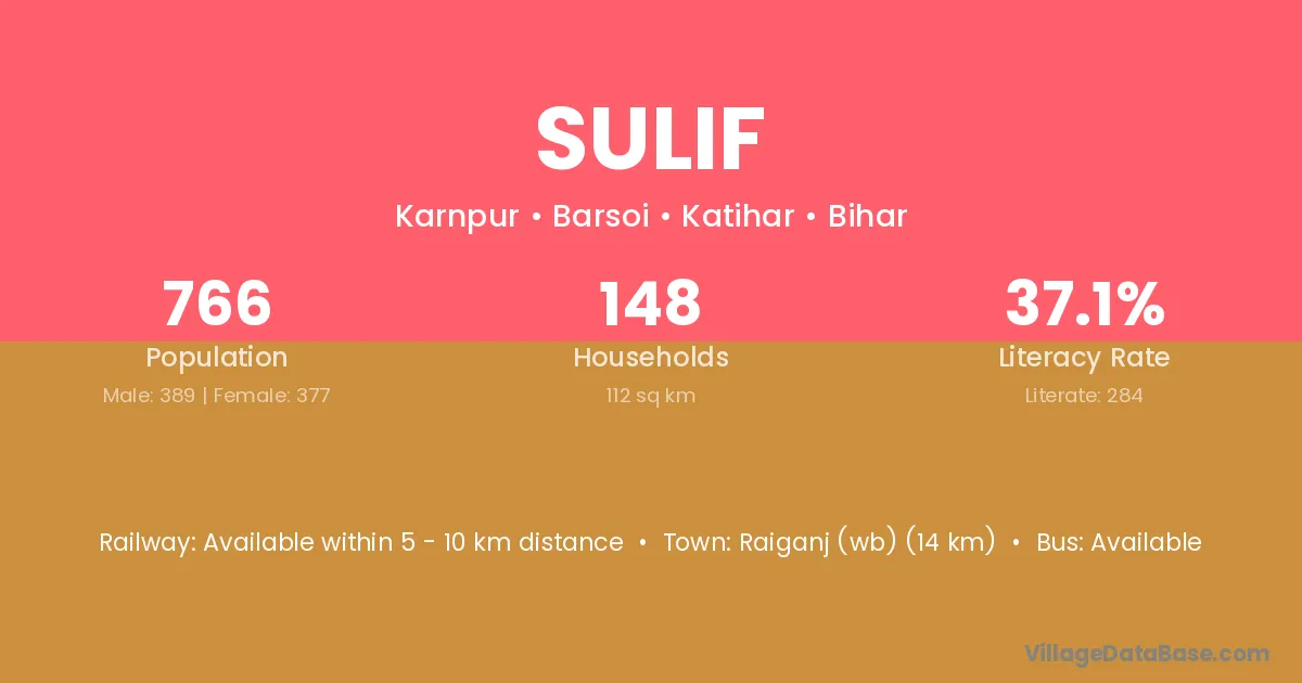 Raiganj (wb) (14 km) is the nearest town to Sulif village for major economic activities and is located approximately 14 km away.