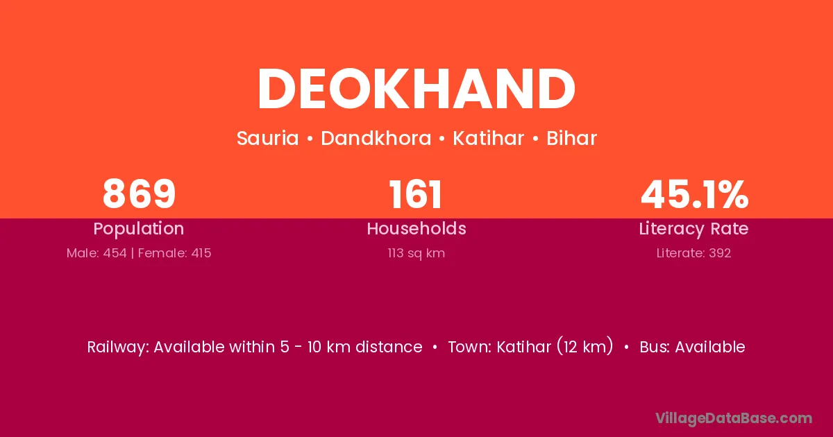 Katihar (12 km) is the nearest town to Deokhand village for major economic activities and is located approximately 12 km away.