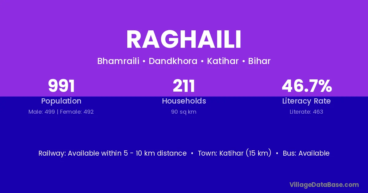 Katihar (15 km) is the nearest town to Raghaili village for major economic activities and is located approximately 15 km away.