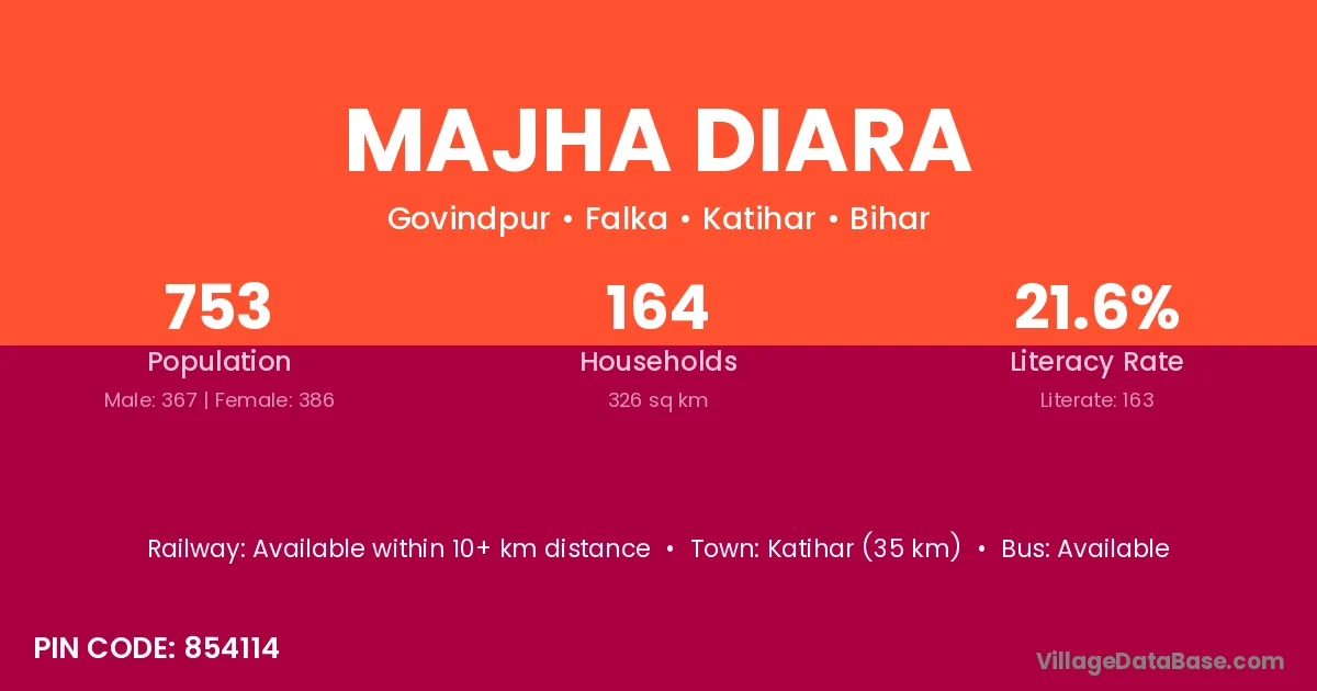 Katihar (35 km) is the nearest town to Majha Diara village for major economic activities and is located approximately 35 km away.