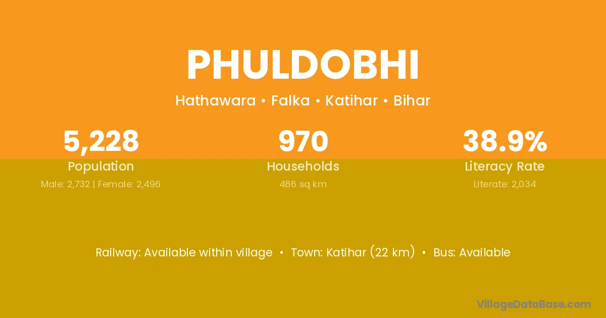 Katihar (22 km) is the nearest town to Phuldobhi village for major economic activities and is located approximately 22 km away.