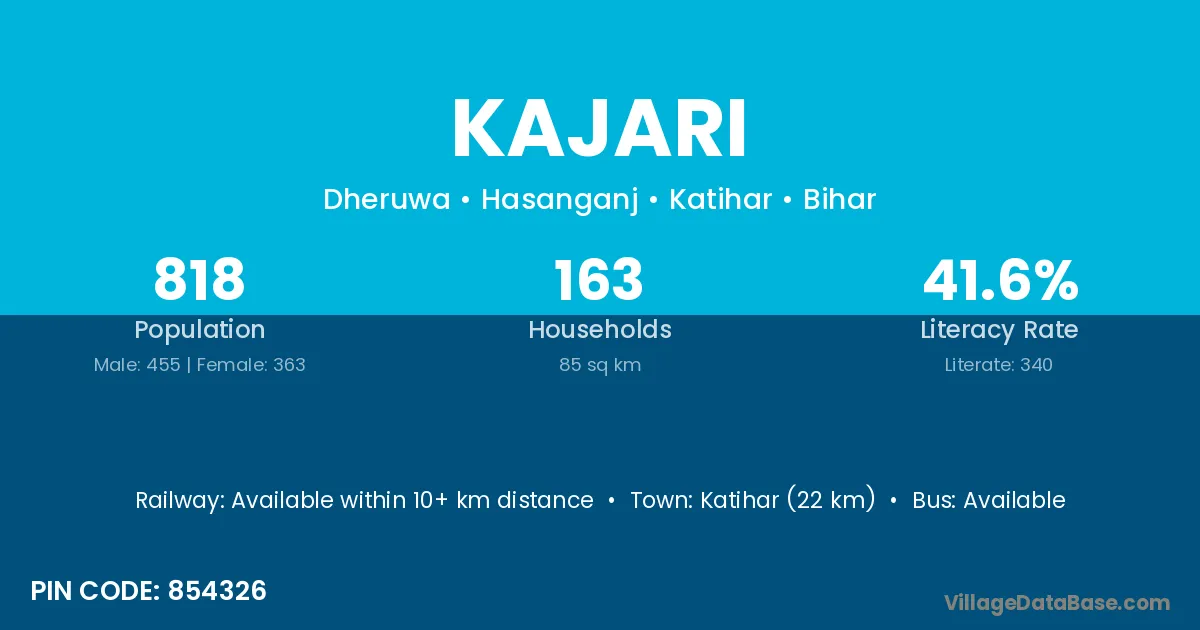 Katihar (22 km) is the nearest town to Kajari village for major economic activities and is located approximately 22 km away.