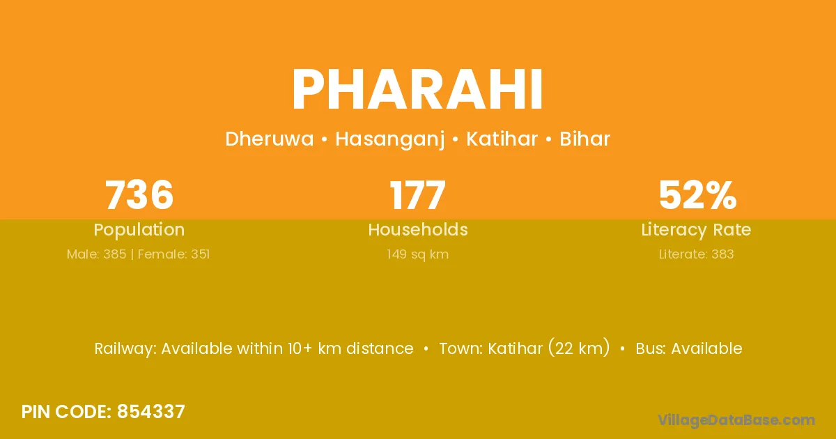 Katihar (22 km) is the nearest town to Pharahi village for major economic activities and is located approximately 22 km away.