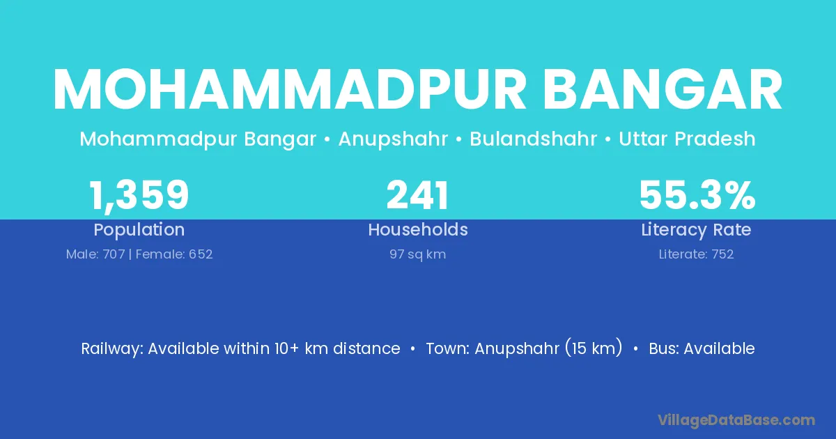 Mohammadpur Bangar village has a total population of 5,656 people, of which 2,867 are males and 2,789 are females.